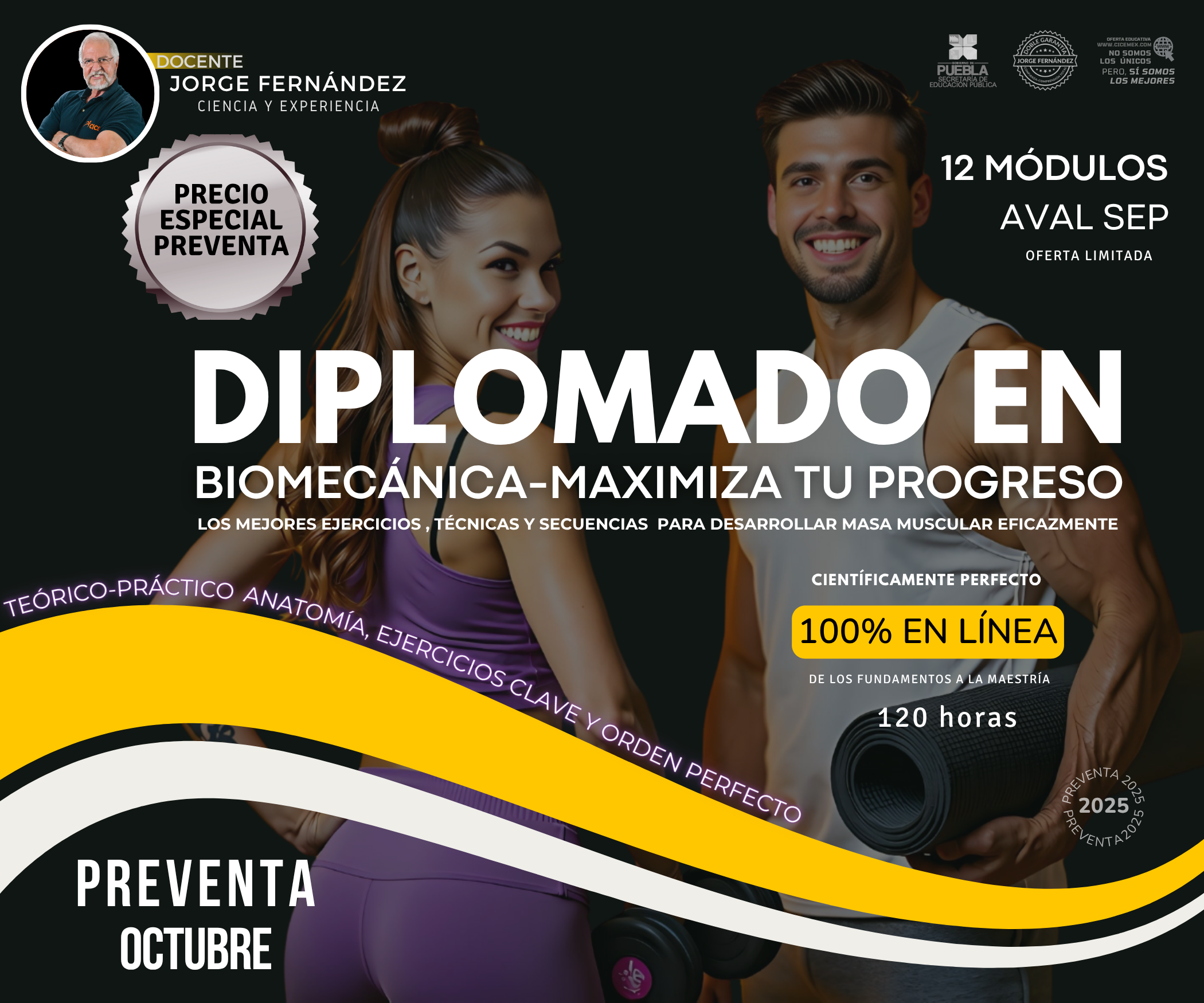“No es solo levantar más, es saber de biomecánica para entender cómo se mueve tu cuerpo para crecer mejor. El músculo se construye con ciencia, técnica y estrategia: conviértete en el entrenador que marca la diferencia.”