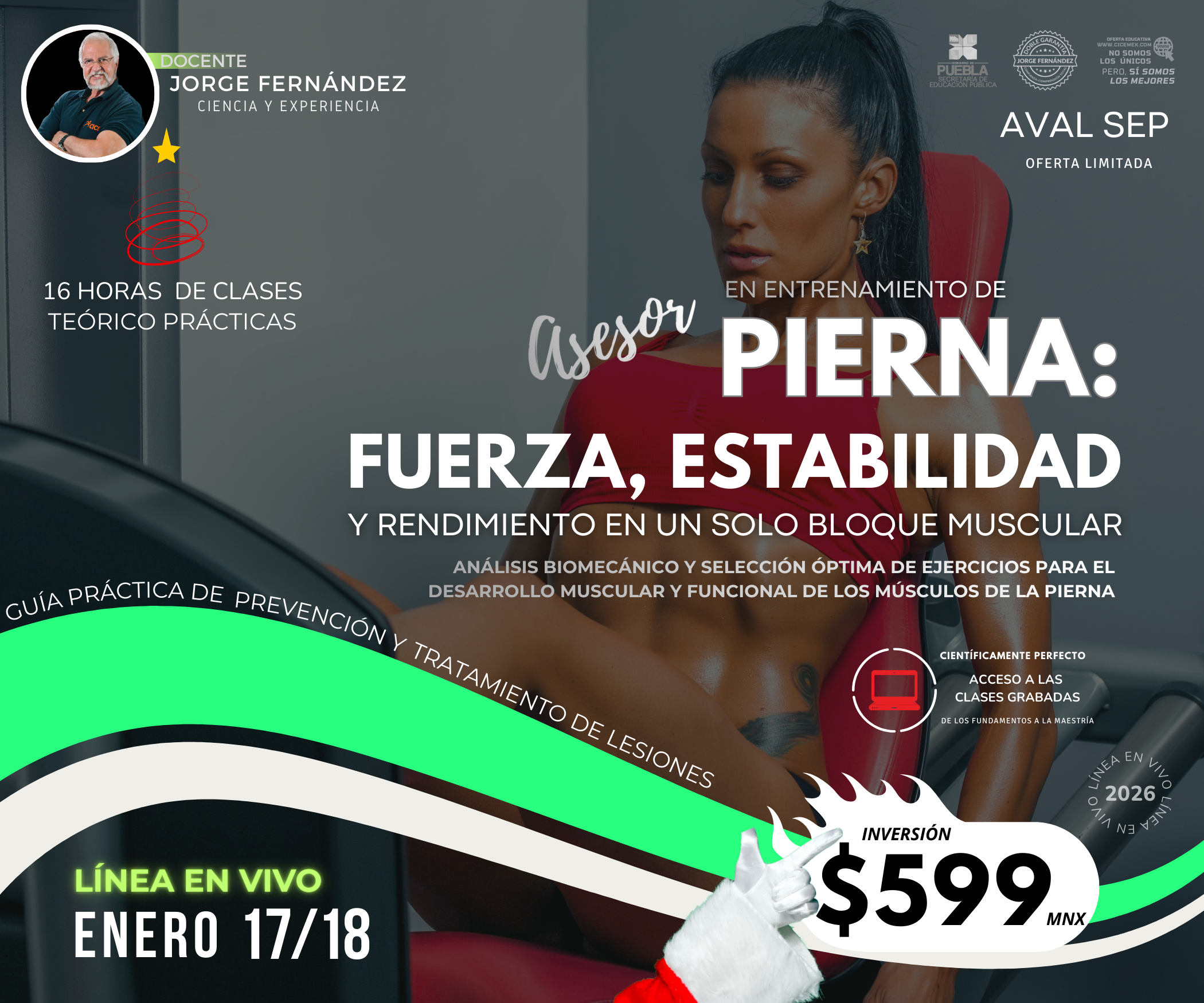 En este seminario revisaremos a fondo los músculos de la pierna, incluyendo cuádriceps, isquiosurales, gemelos, sóleo, tibiales, abductores, aductores y sartorio, los cuales son fundamentales no solo para la estética, sino para el rendimiento físico, la estabilidad postural y la prevención de lesiones.
